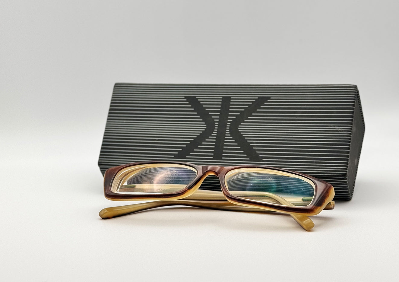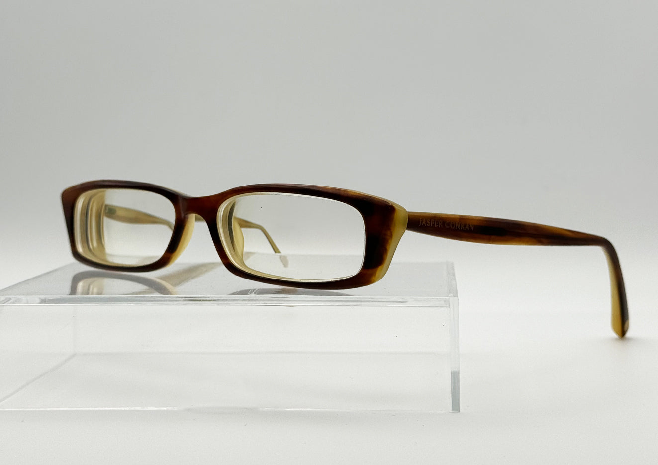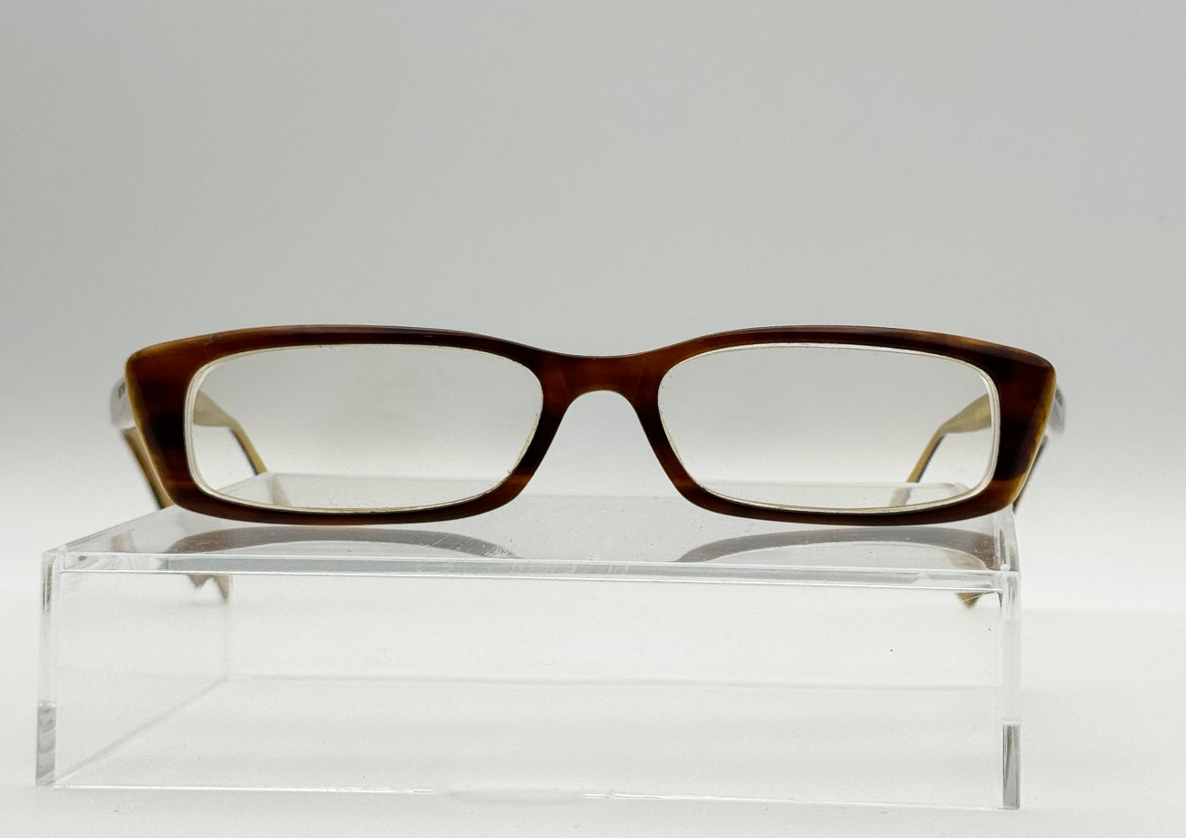 High quality rectangular ladies glasses frames in a stand out two tone Brown and Beige colour with a streaky finish.