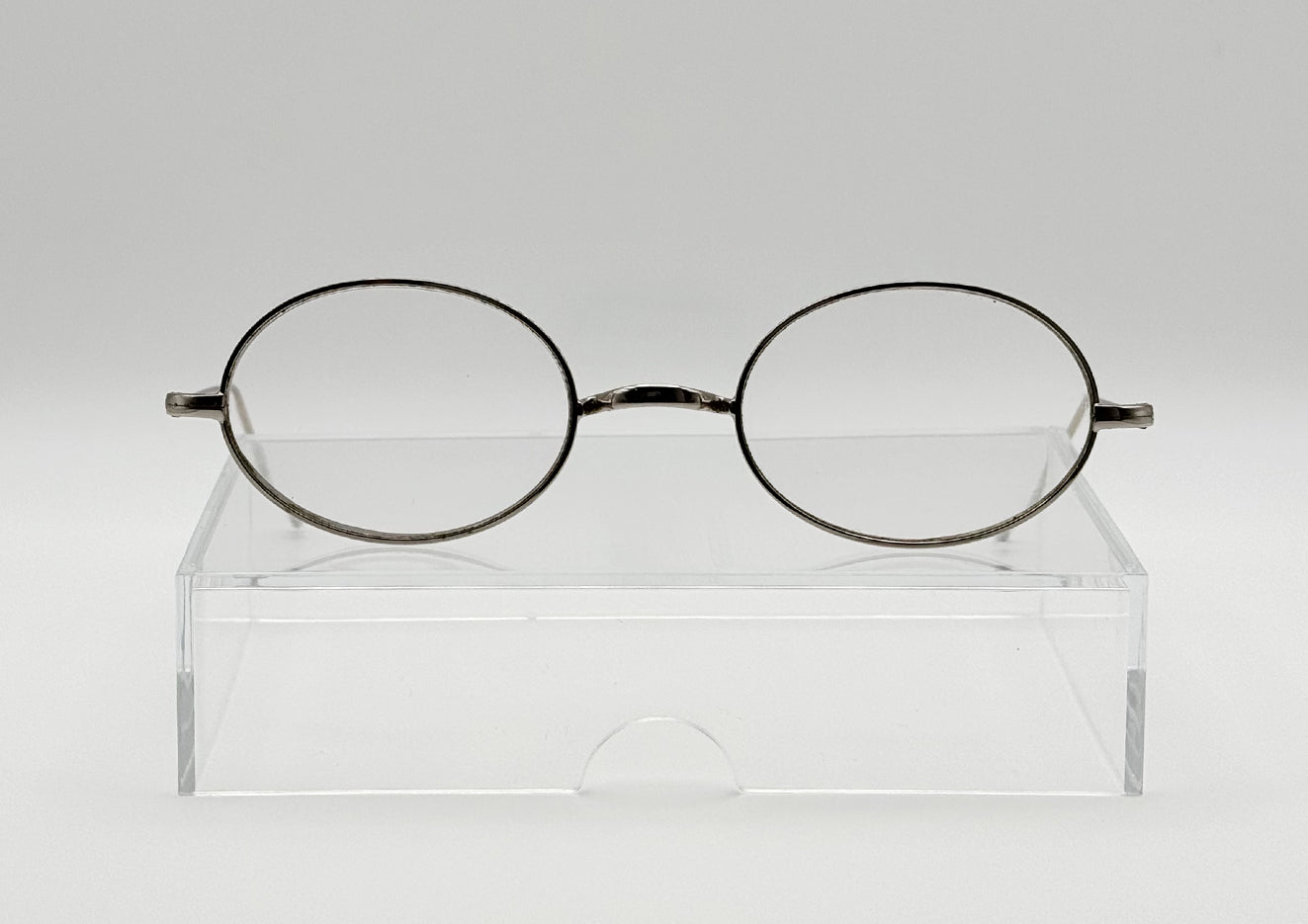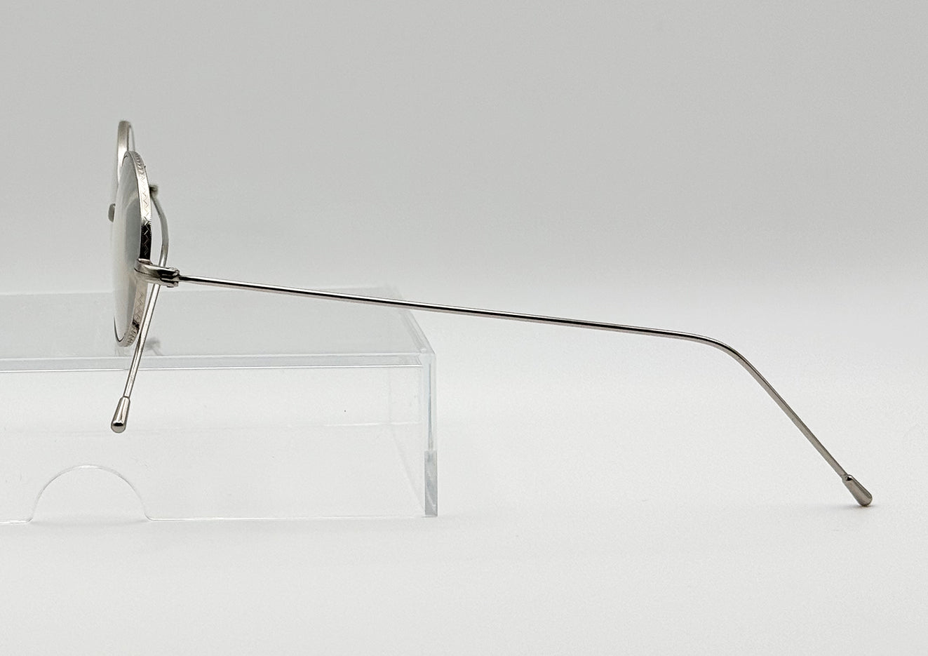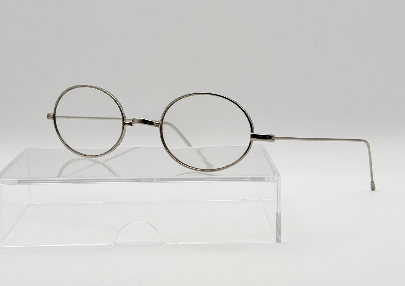 These beautifully delicate ladies eyeglasses embody elegance. The silver wire frames feature incredible attention to detail, with patterns engraved on the sides surrounding the lenses and silver caps at the ends of each temple arm.