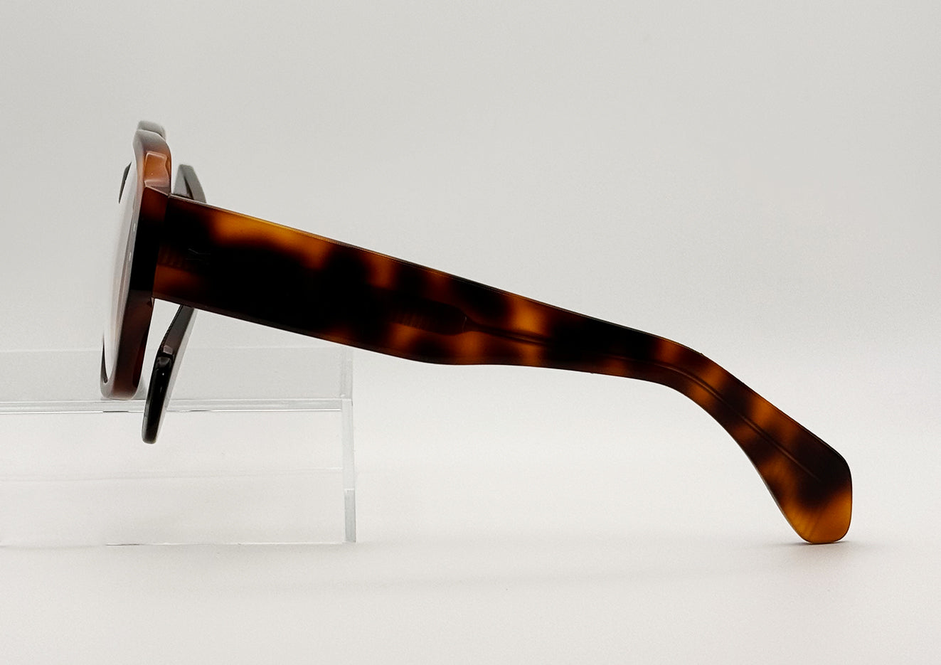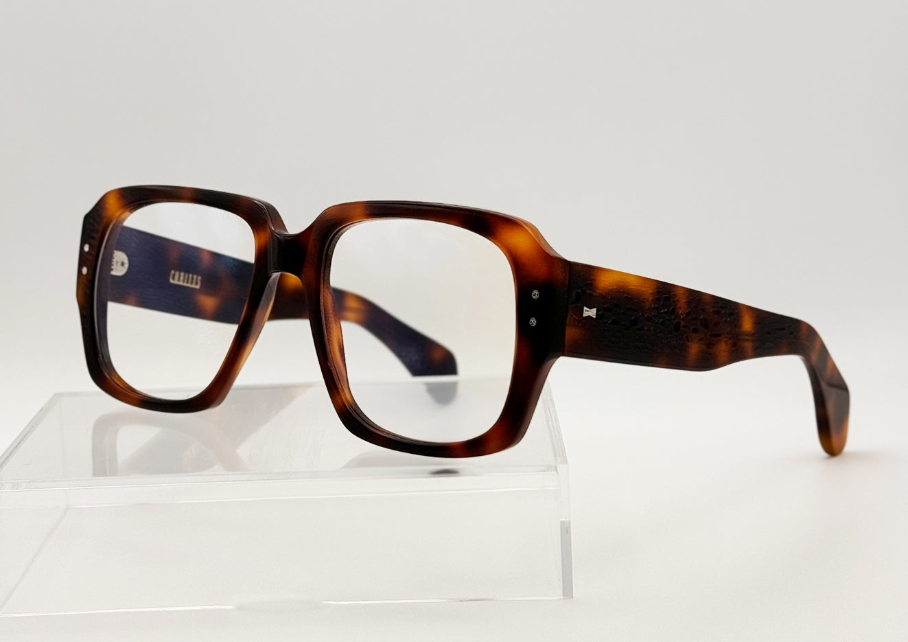 These large square-shaped glasses frames embody fine craftsmanship. They feature a tortoiseshell pattern and silver detailing.