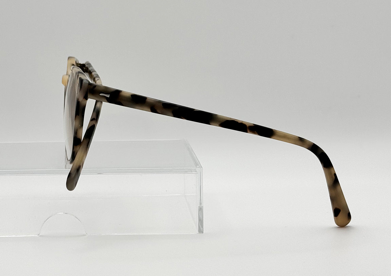 These panto shaped unisex glasses are Granite in colour and they have a tortoiseshell-like pattern which gives the frames a look similar to marble. They are made of premium cellulose acetate and are due to last a lifetime.