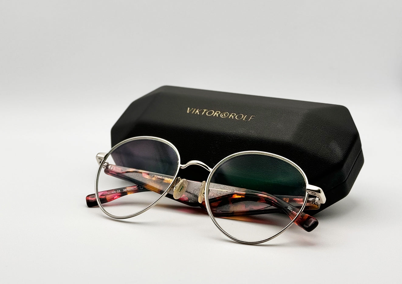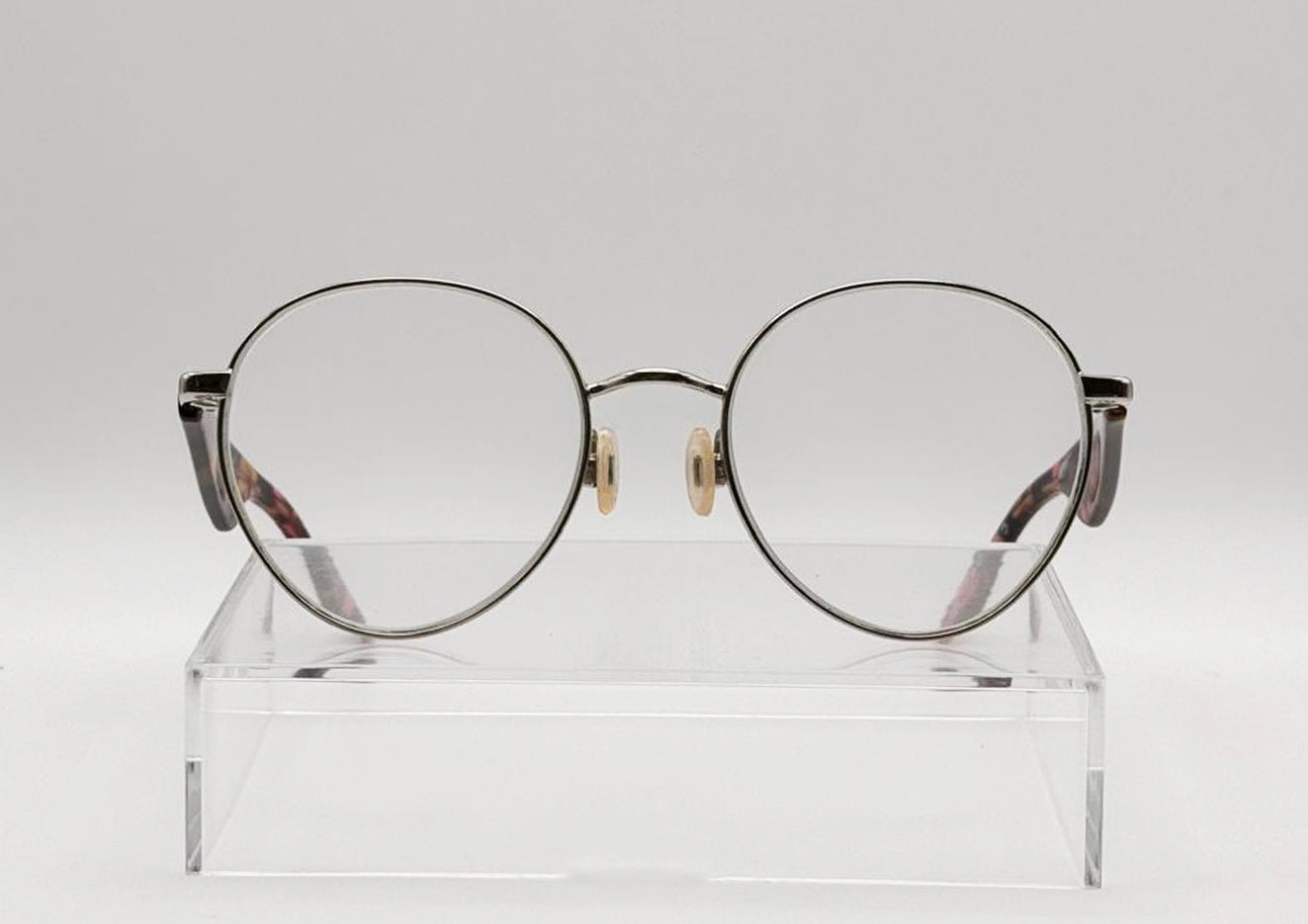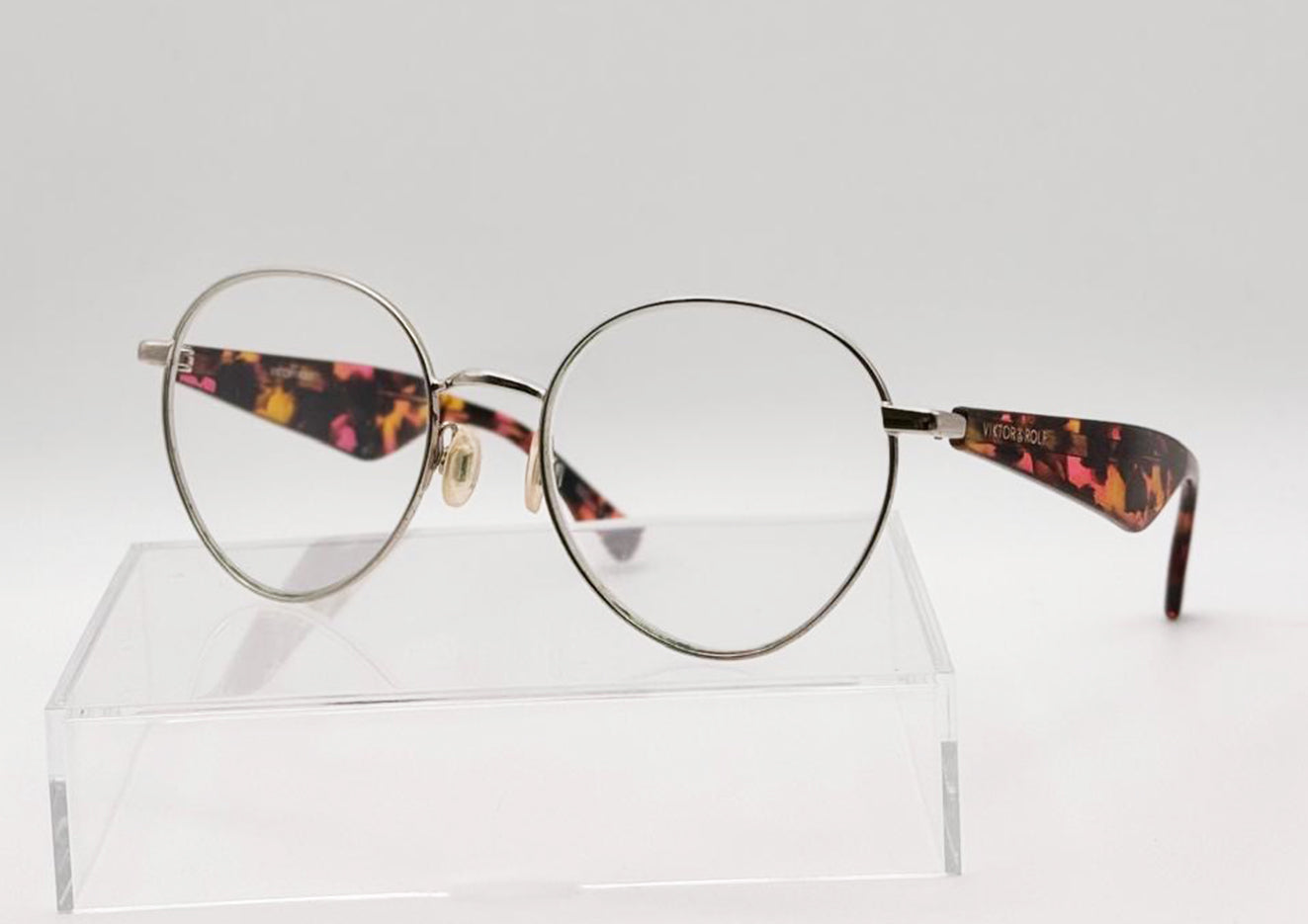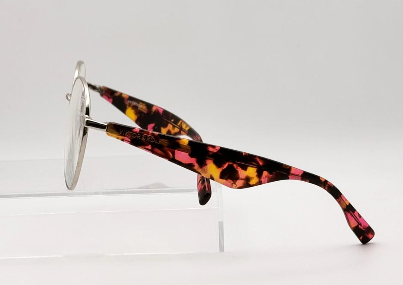 These unique teardrop shaped ladies eyeglasses embody a stunning contrast between the simple steel front, and the eye-catching pink and yellow tortoiseshell sides. These ladies glasses are truly fantastic!