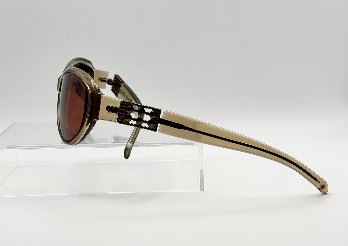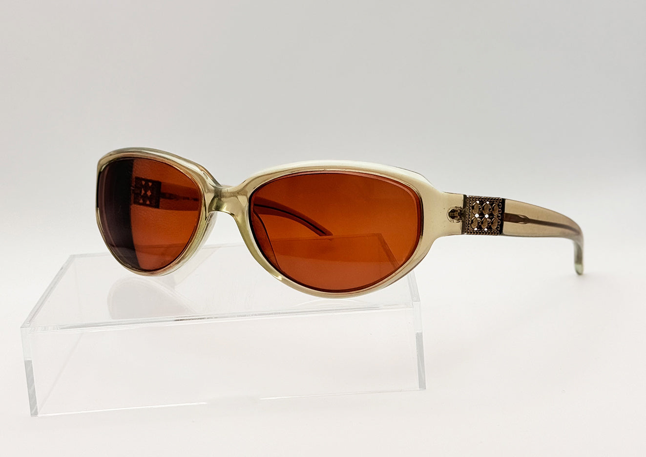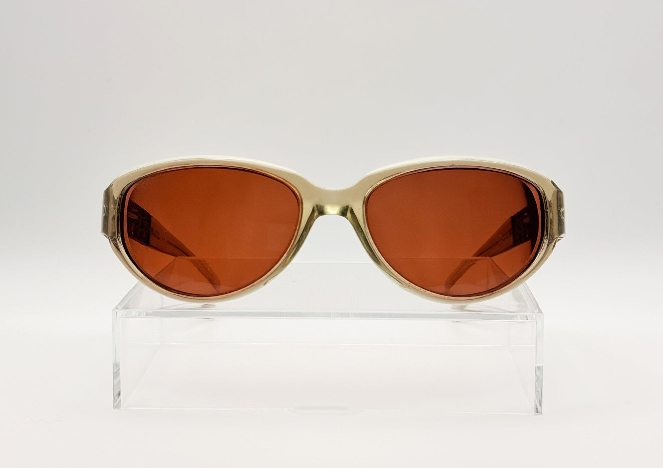 Retro oval shaped transparent sunglasses with orange tinted lenses