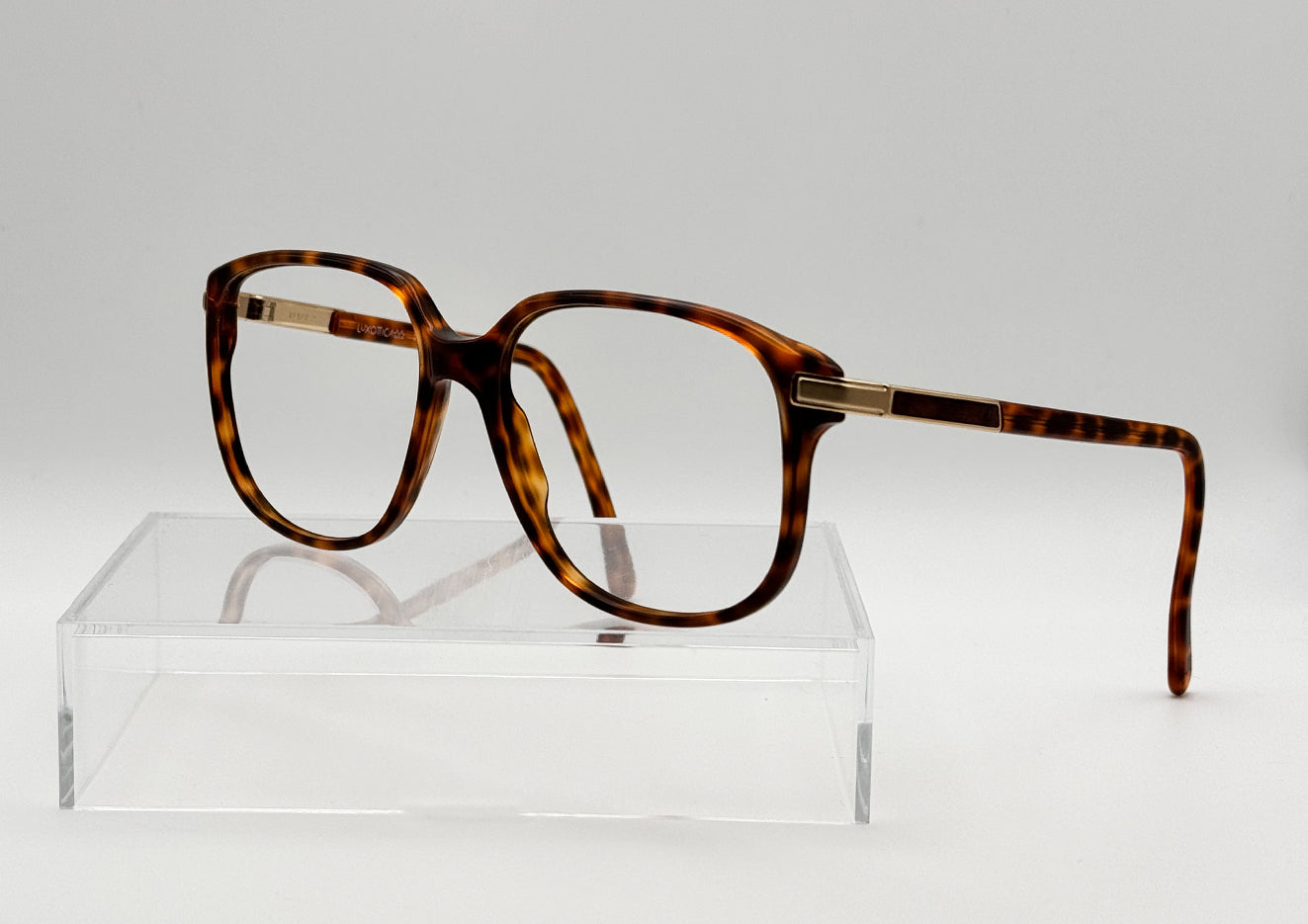 Vintage 'geek glasses' shaped eyeglasses in a wonderful spotted brown colour.