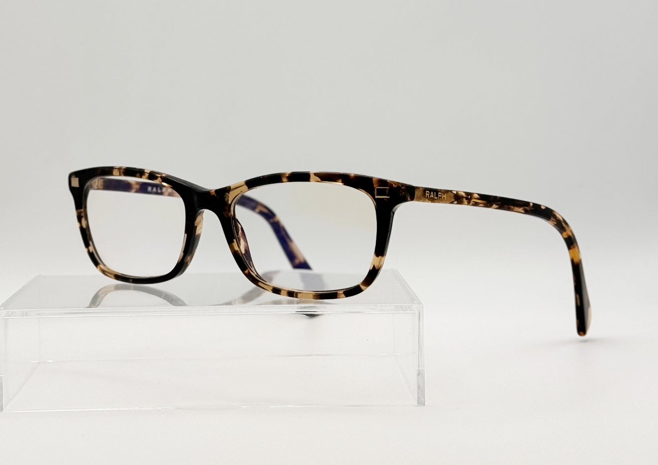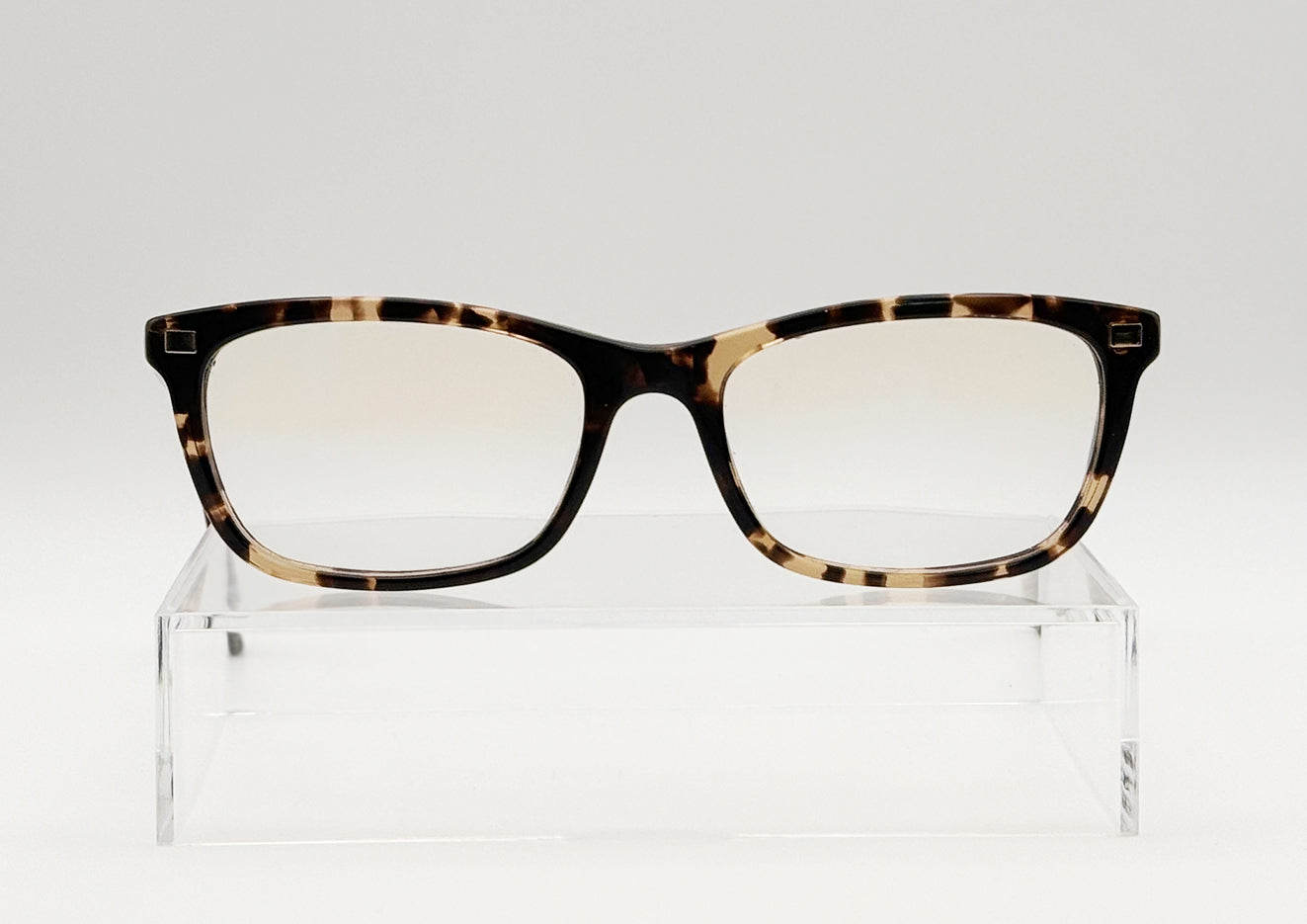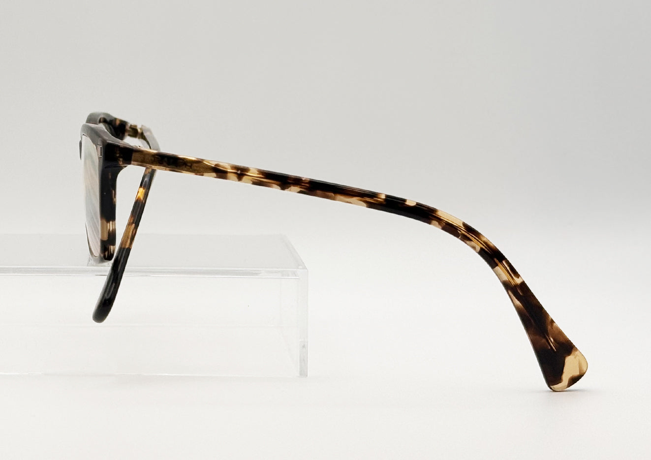 These striking women's glasses are a Gold and Dark Brown tortoiseshell colour, with shining golden accents scattered throughout.
