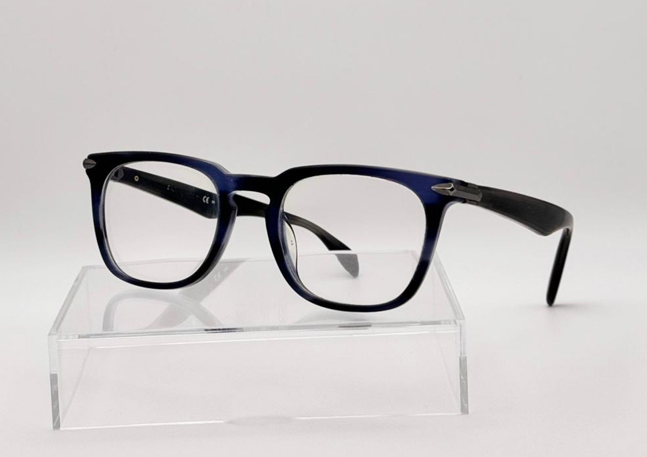 These trendy Wayfarer shaped mens eyeglasses come in a unique Blue Havana colour with black temple arms. The frames feature translucent blue sections which allow light to pass through some parts of them.