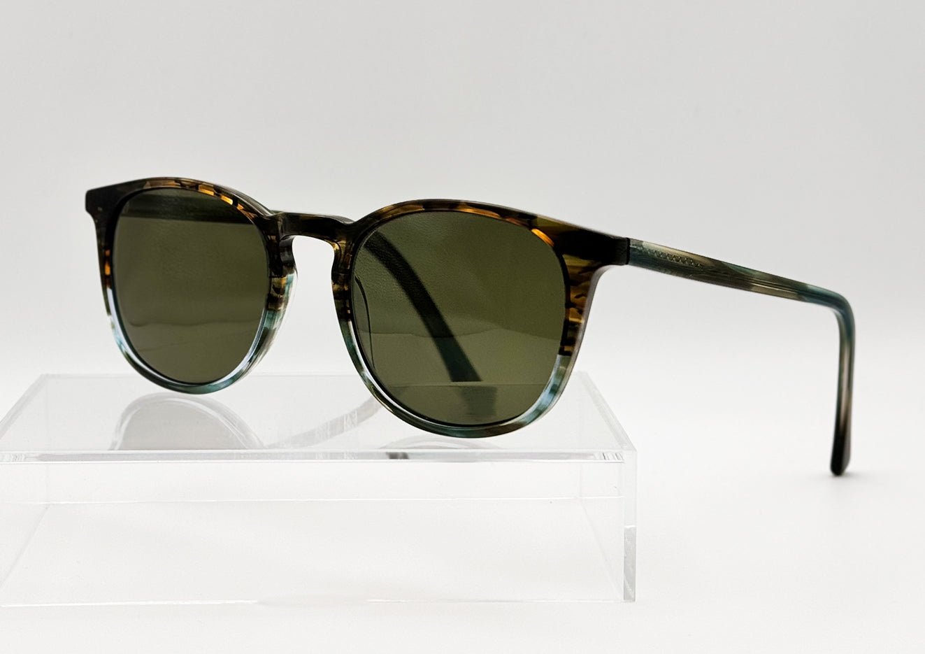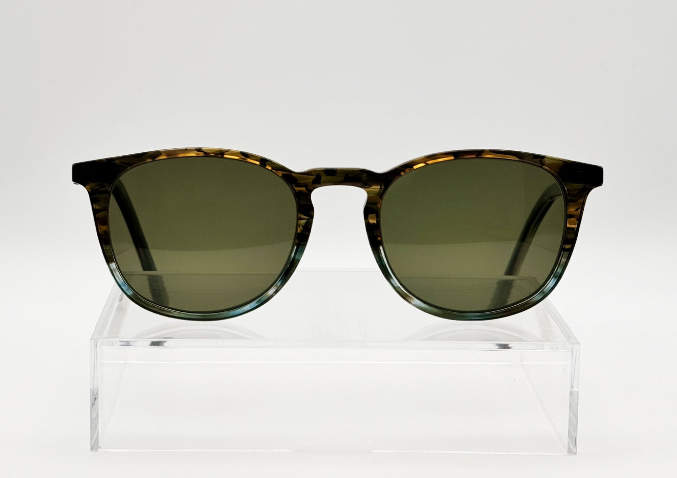 This timeless unisex frame is ideal for everyday wear. The slim temples ensure that the glasses do not rest too heavy on the ears and the slightly wider nose bridge means the glasses do not sit too high on the nose. The wonderful colour makes these frames incredibly unique with 'Earth' on the top and 'Sea' on the bottom.