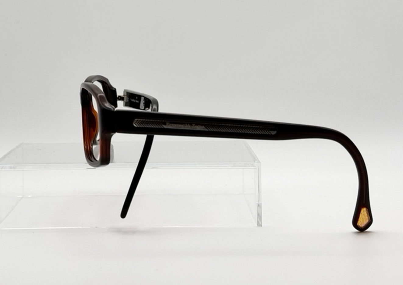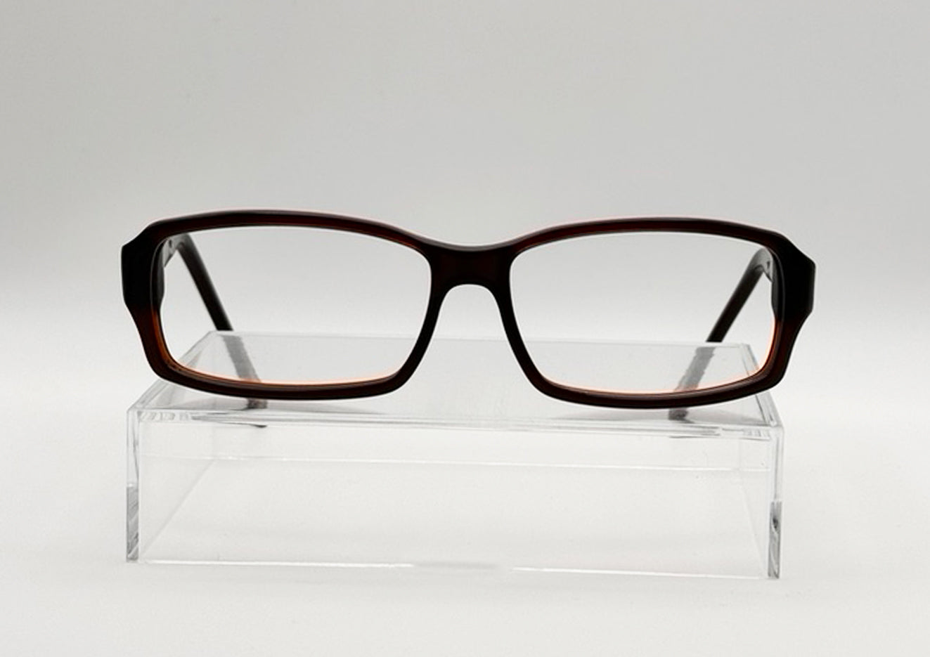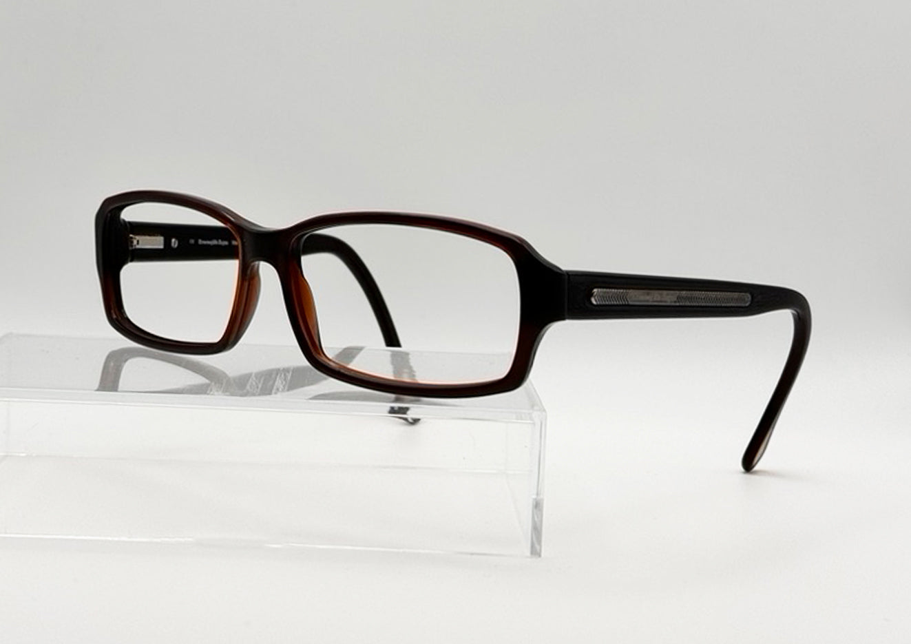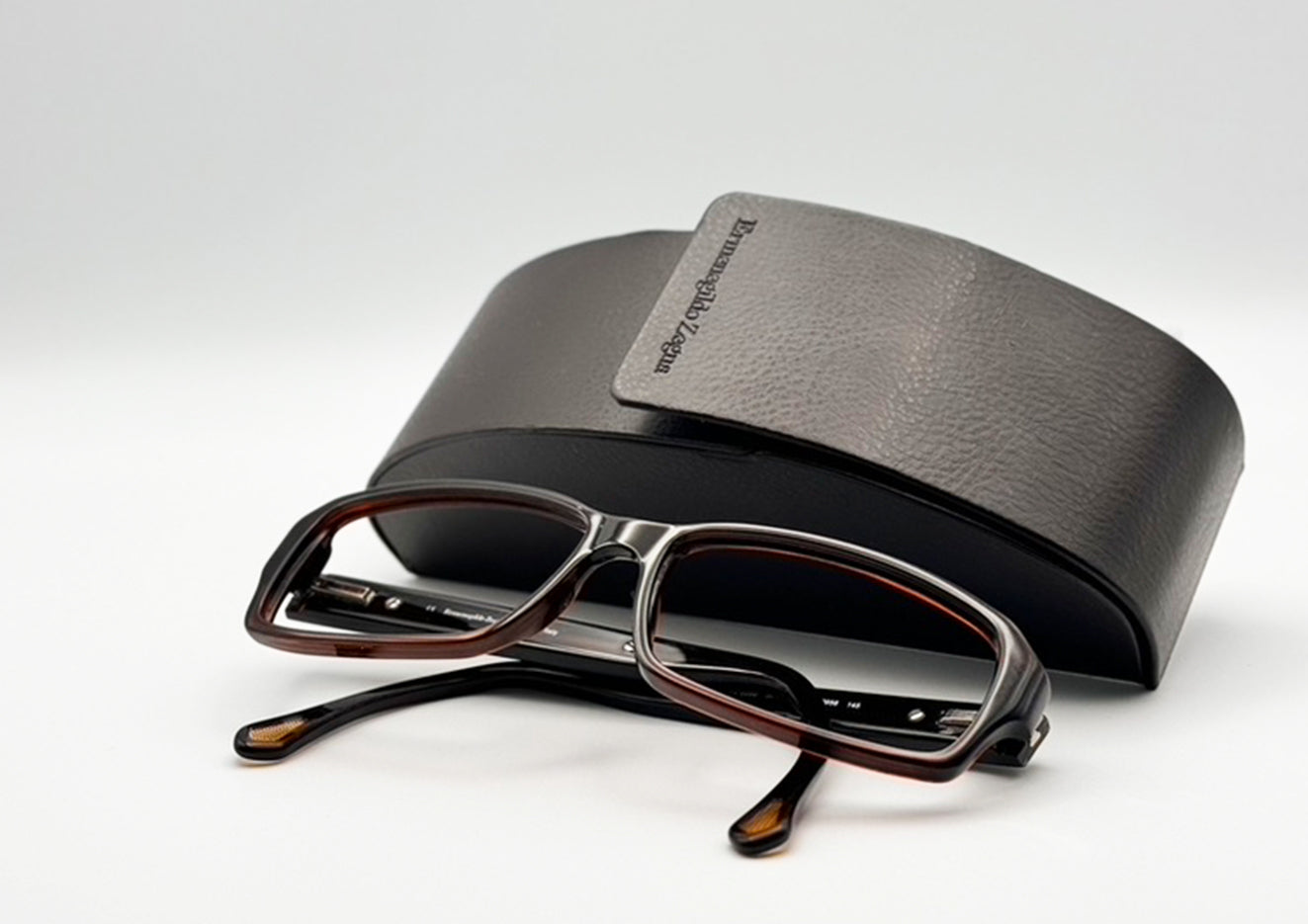 These slightly transparent brown rectangular eyeglasses have a metal insert with the Zegna logo on the temples. They are a mens style but they can be rocked by anyone!